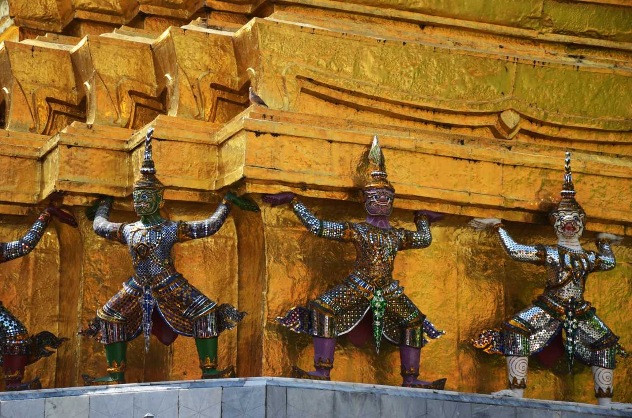 Grand Palace BangkokSupporting figures (yakshas) hold up structures—they’ve stood “lifting” for a century.