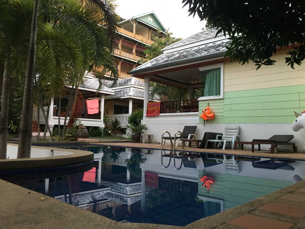 Each unit is a Thai‑style villa with Southeast Asian charm. Stray cats abound—great if you like cats.