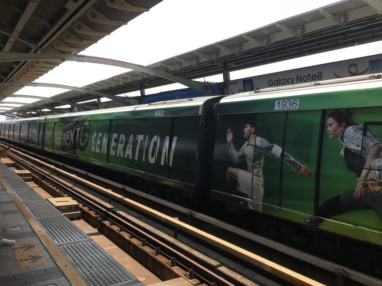 BTS from Mo Chit to Ratchathewi (Asia Hotel) is only six stops but costs 40 THB (about 8 RMB). Kids (around 1 m+ height) pay adult fares. Bangkok’s metro is distinctive: windows look normal from inside but outside appear almost windowless—likely due to strong tropical sunlight.