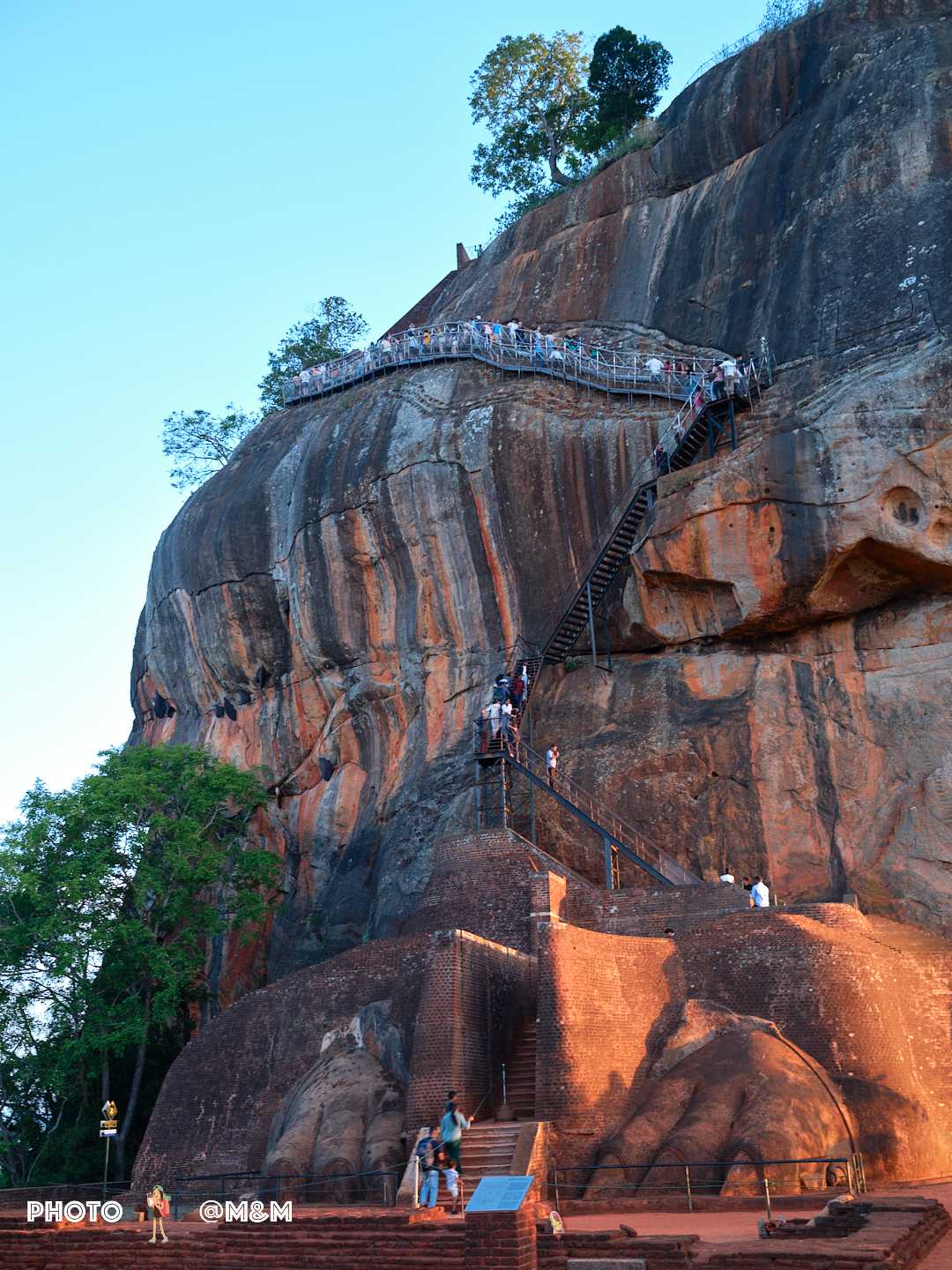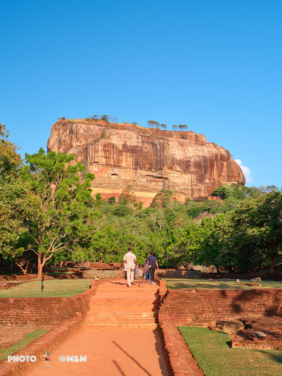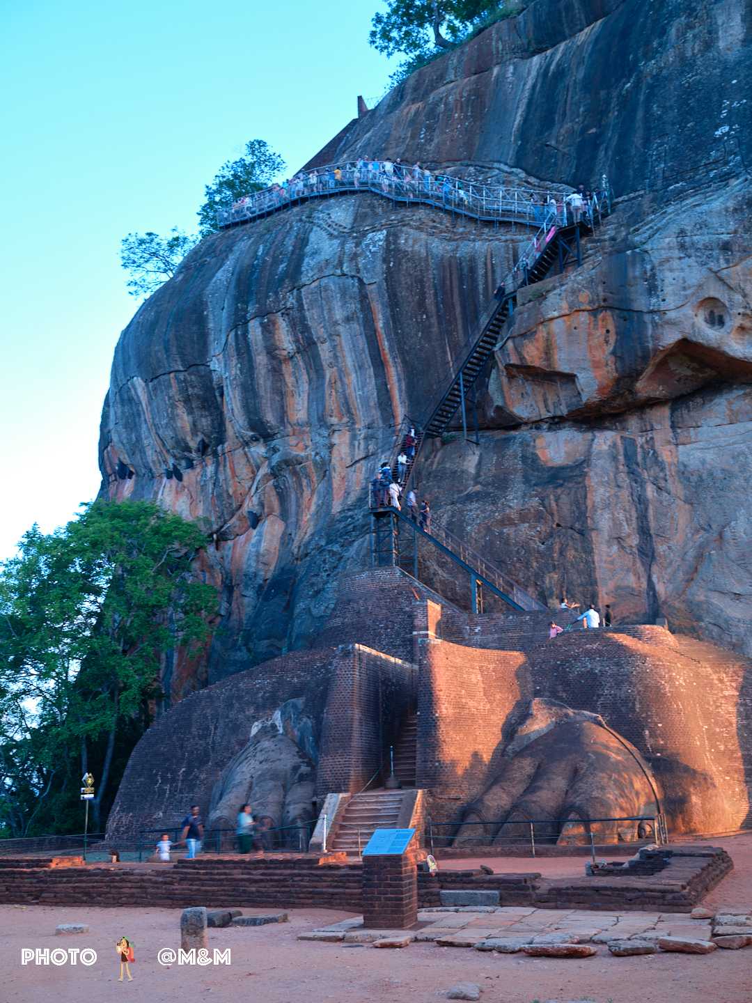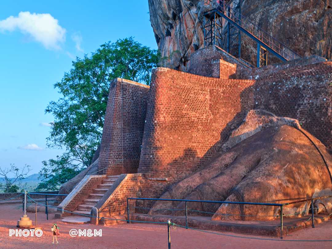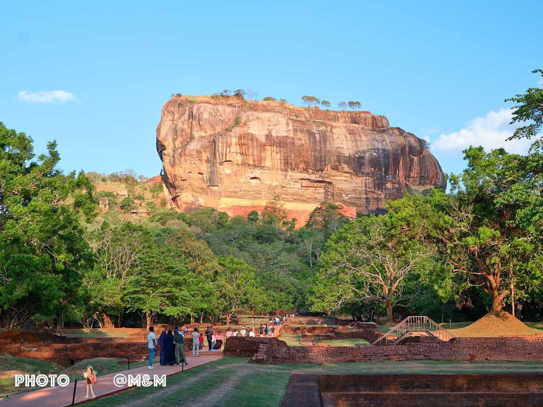 The guide led us up the stone steps. This sky palace was built in the 5th century by King Kashyapa to avoid danger. The rock rises about 200 meters, shaped like a reclining lion. Even from the foot of the mountain its grandeur is breathtaking.