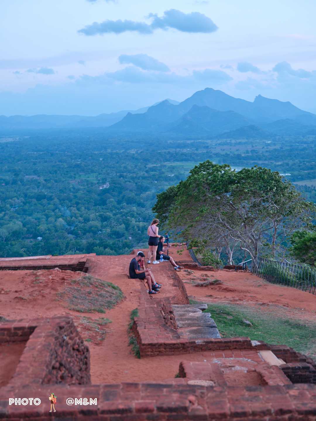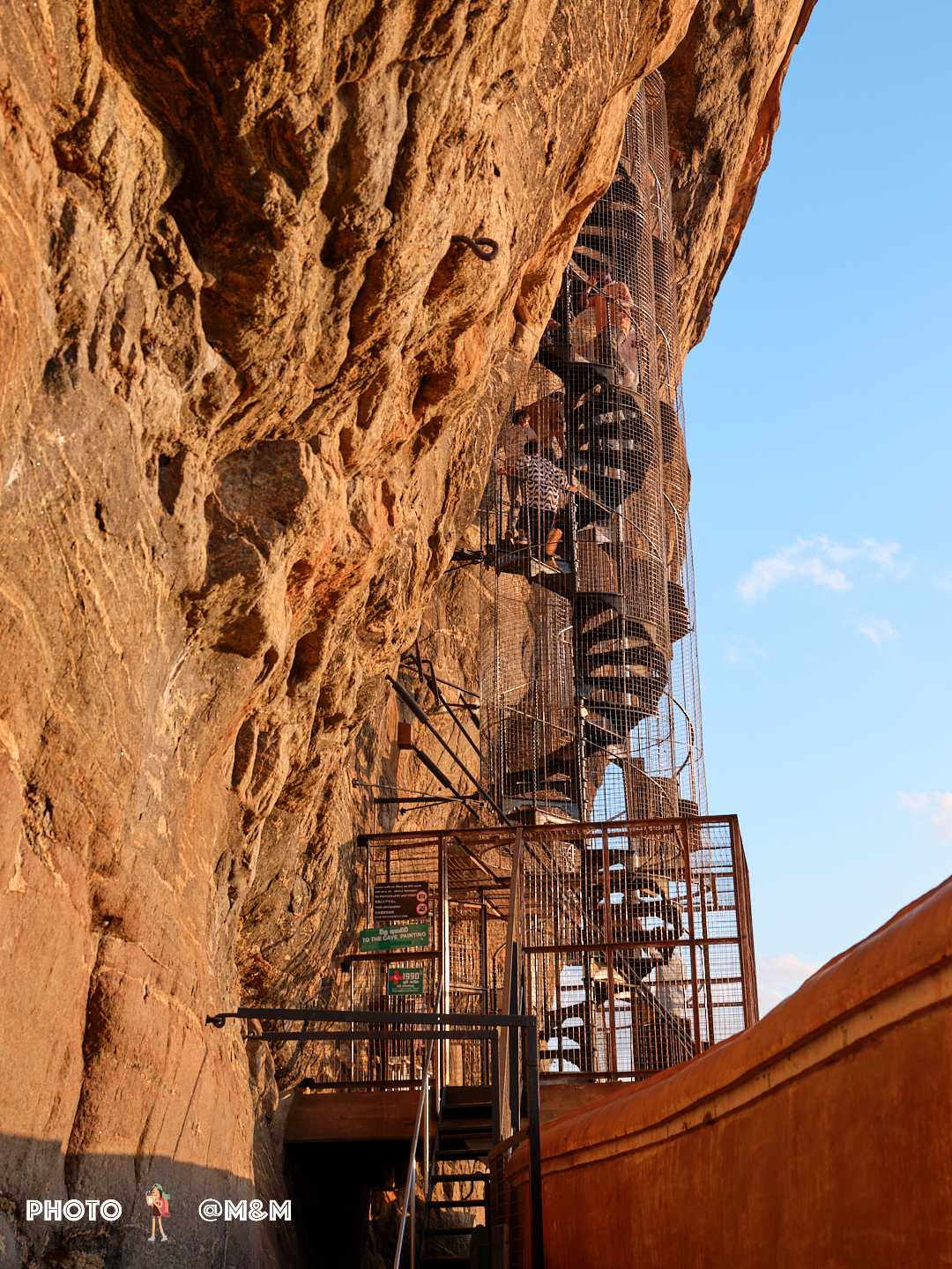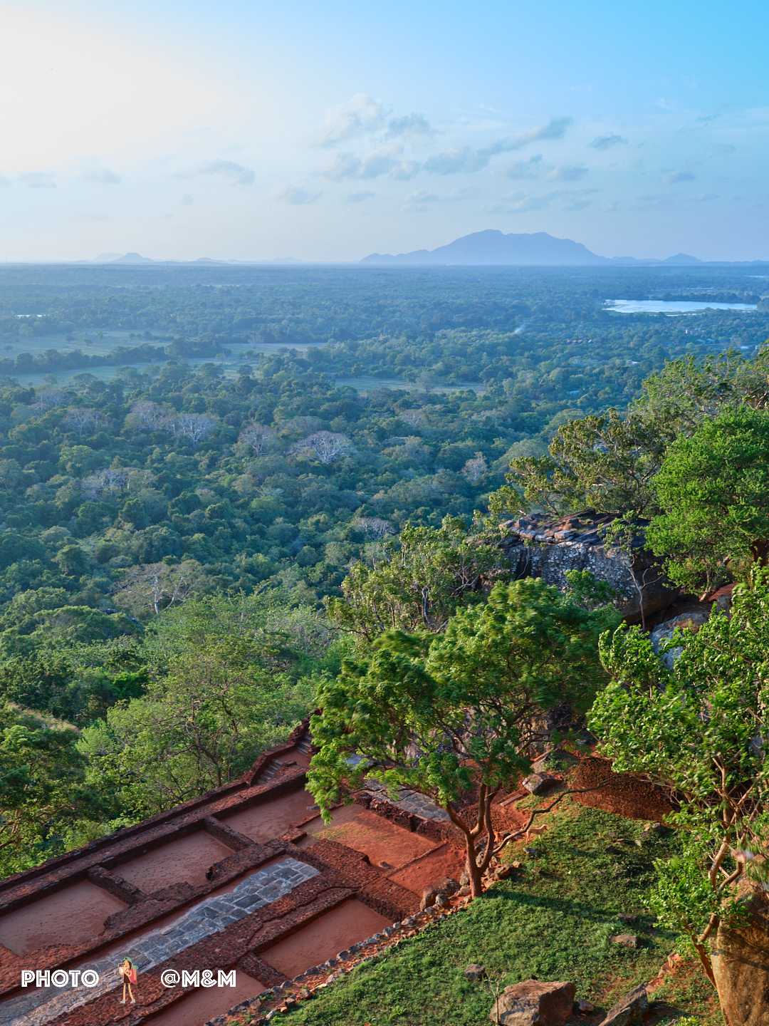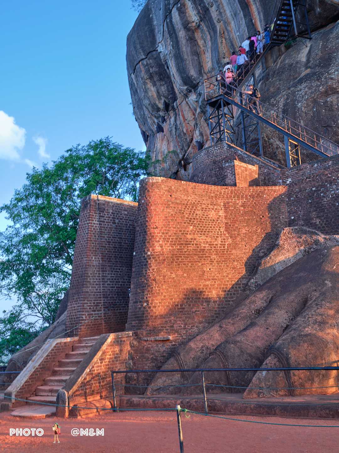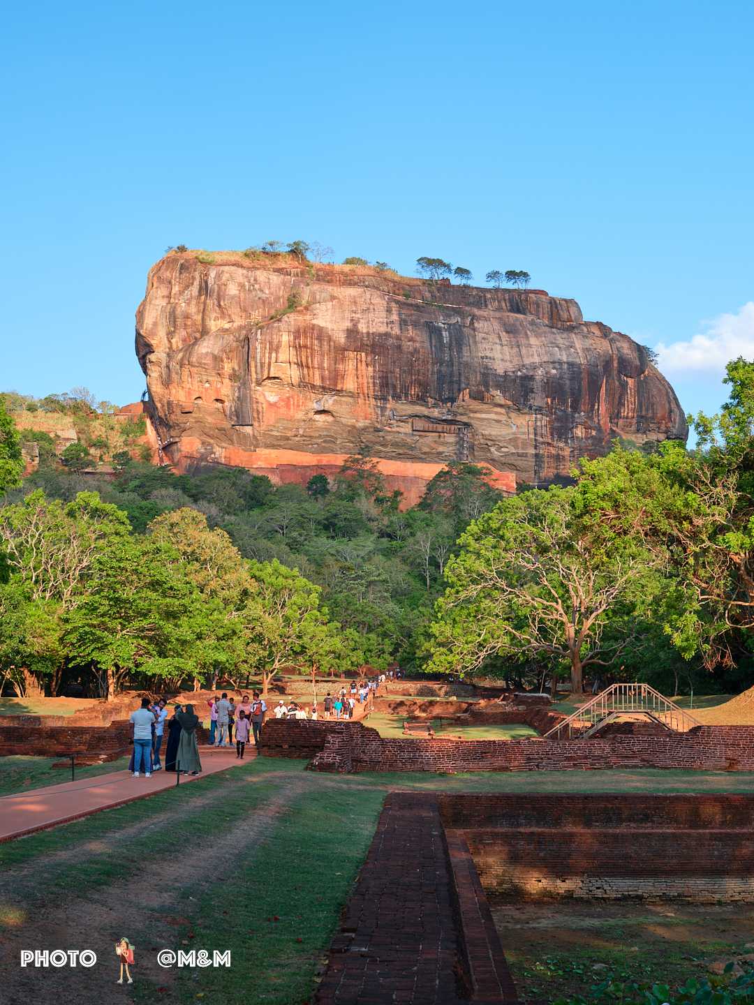 The guide led us up the stone steps. This sky palace was built in the 5th century by King Kashyapa to avoid danger. The rock rises about 200 meters, shaped like a reclining lion. Even from the foot of the mountain its grandeur is breathtaking.