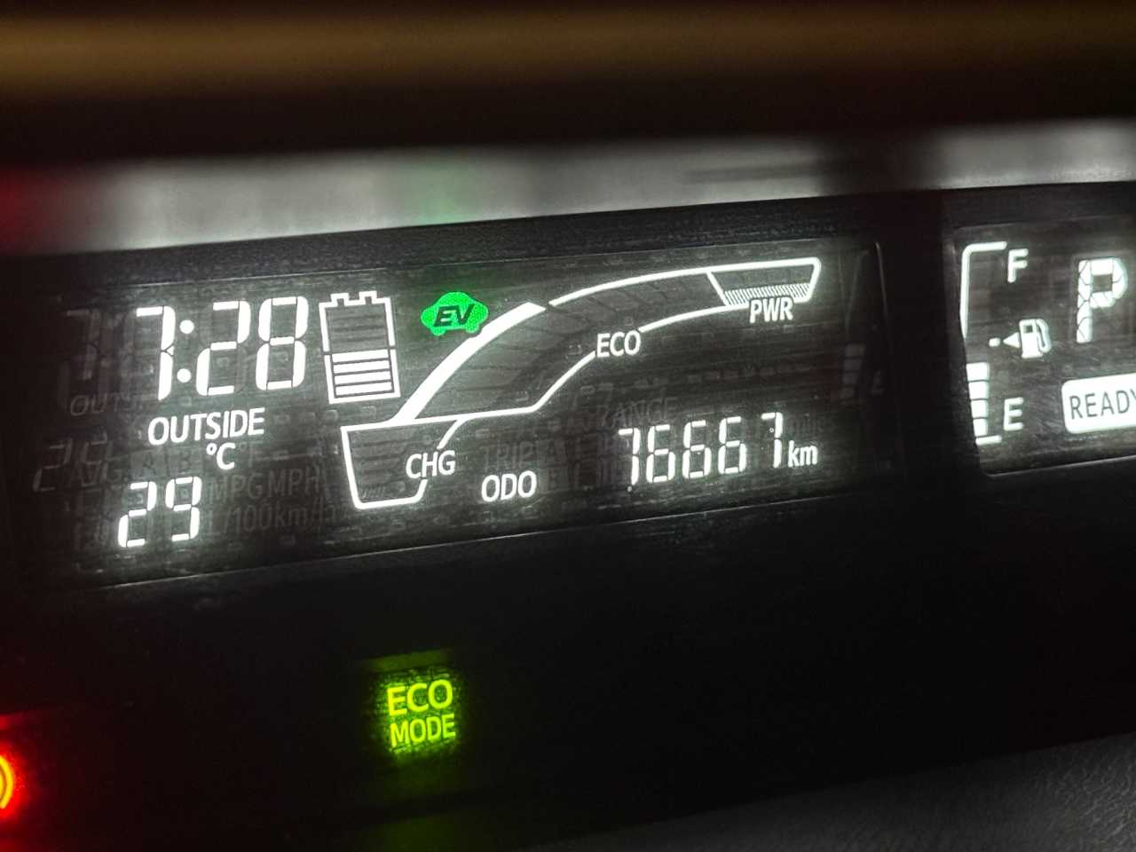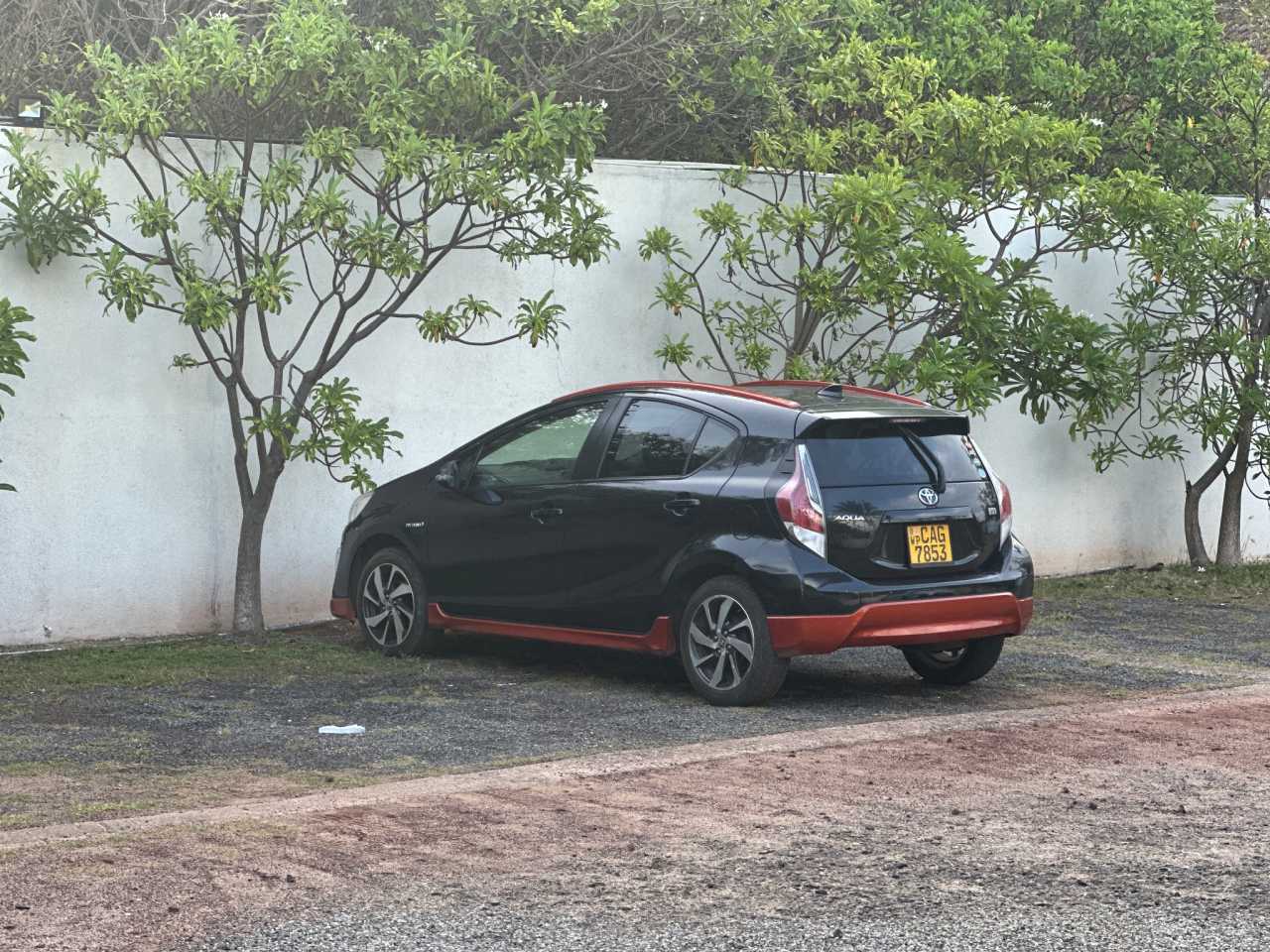 Below is our rental—a Toyota hybrid with low fuel consumption, yet it fits two large suitcases.