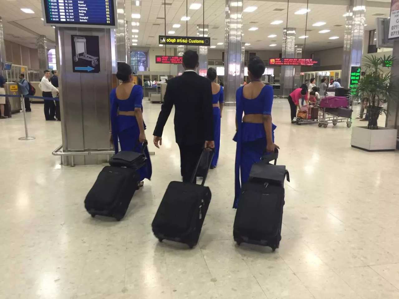 Saturday, Sept 10: after 4.5 hours we arrived in Colombo at 07:53 Beijing time (05:30 local). After queuing for the restroom, at 08:20 we queued for immigration—crowded but efficient. Phones switched automatically to 06:19 local (08:47 Beijing). Dawn was just breaking as our group finished procedures and regrouped. Outside the terminal were currency exchange counters—about CNY 1 ≈ LKR 20. Most airport staff were men in navy uniforms, with darker complexions.