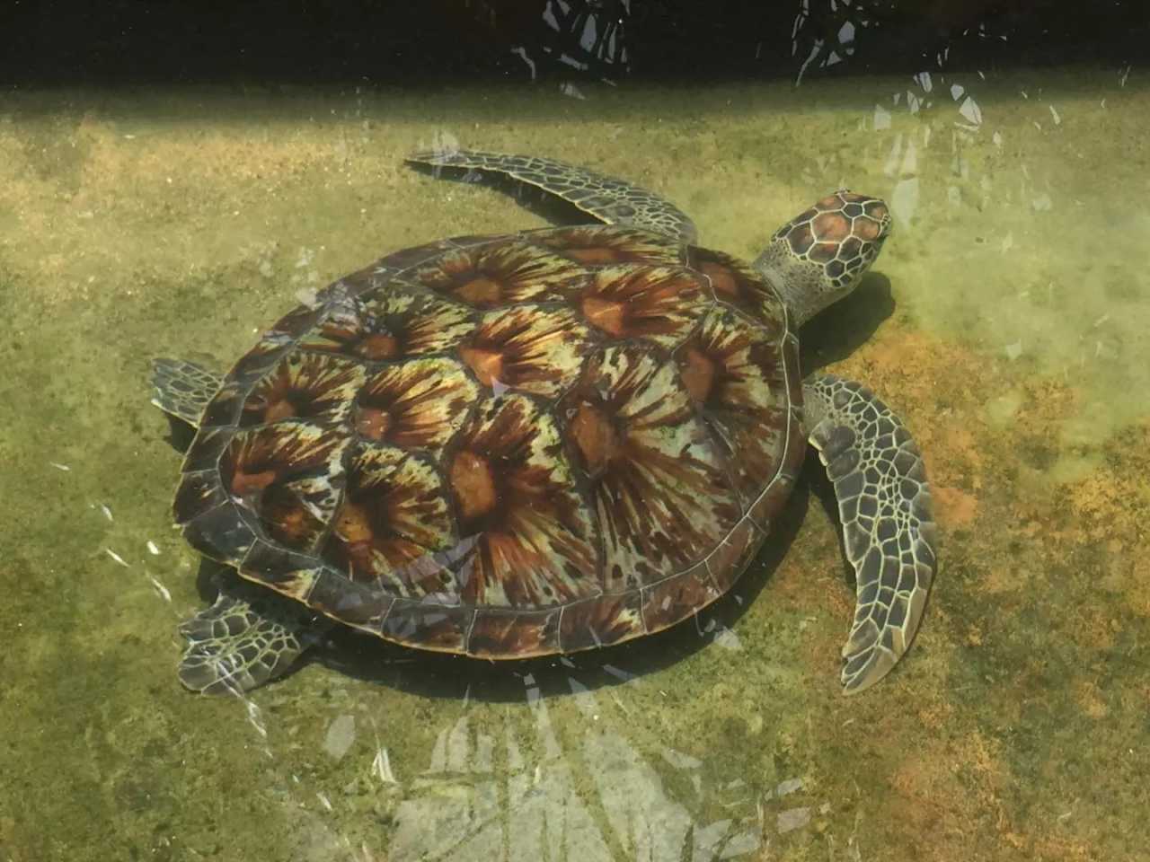 Next we visited a sea turtle hatchery and conservation center. Sea turtles are cold‑blooded; when I held a hatchling its energy was palpable—four flippers wiggling non‑stop. The center looks simple but provides a safe haven for injured or elderly turtles. During hatching season hundreds of babies swim back and forth in the tanks. Staff explained that the tanks are arranged for 1‑, 2‑, and 3‑day‑old hatchlings to acclimate to seawater and practice swimming, so their fragile shells can withstand the ocean; many staff are volunteers.