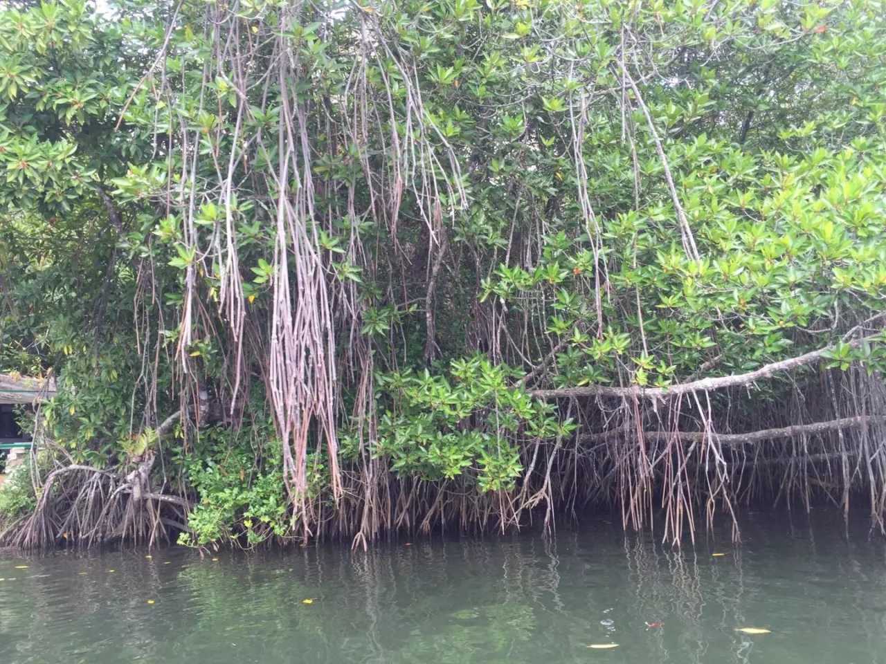 Thursday, Sept 15: we toured a mangrove forest. Mangroves are evergreen woody communities of shrubs or trees that thrive in tropical and subtropical intertidal zones. Special adaptations include buttress and prop roots to resist waves, and pneumatophores—finger‑like aerial roots—for breathing at low tide; many species show vivipary, with embryos sprouting on the mother plant before dropping and rooting in the mud. Some species excrete salt through leaf glands, leaving white crystals after drying; others have thick, fleshy leaves to tolerate saline water. Leaf thickness varies with tidal position. Around the tropical world mangroves have similar forms because they are shaped by saline coastal soils. We crossed the mangroves and visited a small village with many coconut‑made handicrafts; I even saw a porcupine—bristling spines, like a giant hedgehog with a piggy face.