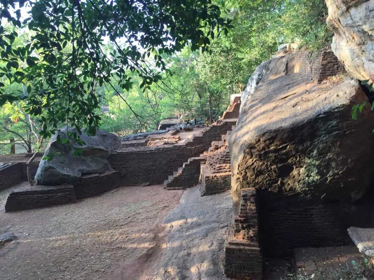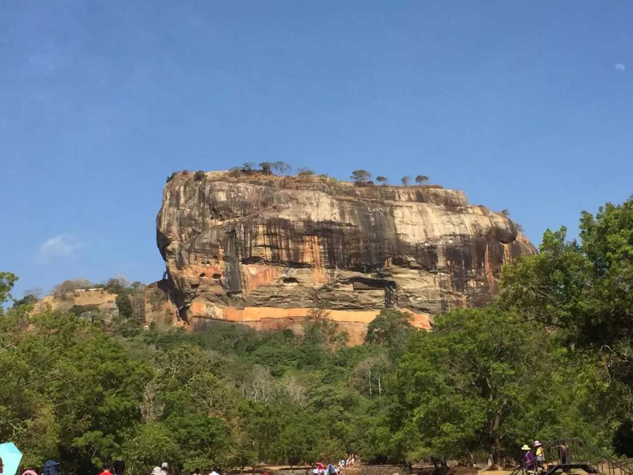 Sunday, Sept 11: after breakfast we drove to Sigiriya to visit Lion Rock. Its origin has a story: King Kashyapa I seized the throne in 477 CE after killing his father. His half‑brother Moggallana fled to India. To avoid retaliation, Kashyapa chose an isolated monolith ~70 km from the capital—Sigiriya—to build a palace and fortress on a rock that was easy to defend. Lion Rock rises abruptly from the plain to ~370 m. Legend says Kashyapa built his citadel here; corridors and stairs made of lime, brick, and clay extend from the mouth of a colossal lion, allowing people to ascend to the ancient city. Sigiriya is a jewel of Sri Lankan ancient culture. After nearly a decade of construction, Kashyapa created a sky palace of ~20,000 m² atop Lion Rock—both pleasure palace and stronghold. Below the rock lies the royal garden, said to be among the world’s oldest landscaped gardens, divided into water gardens, boulder gardens, and terrace gardens. Walking the site, the “city” feels modest, but from above it’s expansive: a square moat encircles Lion Rock; the east and west city areas stretch ~3 km east–west and ~1 km north–south, with two moats and three walls. A quick visit takes < 2 hours; a leisurely one takes half a day. At the base are garden ruins—pools and foundations outlining former buildings. We climbed steep stairs among crowds, viewed frescoes and palace remnants, descended around 18:00, dined, and checked into our hotel…