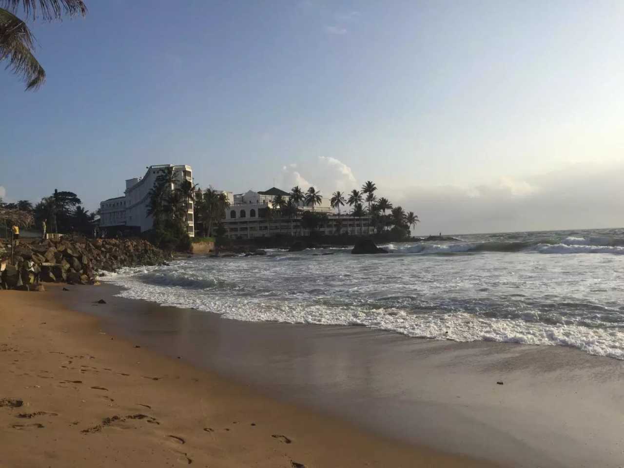 That night we checked into the Mount Lavinia Hotel facing the beach—powder‑fine sand and a boundless sea, a lovely view. Coconut palms line the terrace. At dusk we saw many people swimming and playing on distant sands. It must have been an auspicious day—we arrived to a family dressed for a wedding; after we went out and returned, another wedding was underway there. Attire was elegant and colorful, especially the women. Sinhalese wedding customs are unique: after engagement and setting a date, rings are exchanged. On the wedding day, the bride’s younger brother washes the groom’s feet, they tie a “knot of unity,” and break a coconut. The rites conclude when the bride, on the wedding dais, wears the flower cloth around her waist and a fish‑shaped hairpin from the groom. In the central highlands, polyandry still exists. Mount Lavinia Hotel—beautiful from every angle. Sitting quietly on the balcony with waves crashing and palms shading—“facing the sea, with spring’s flowers” feels too mild to describe it…