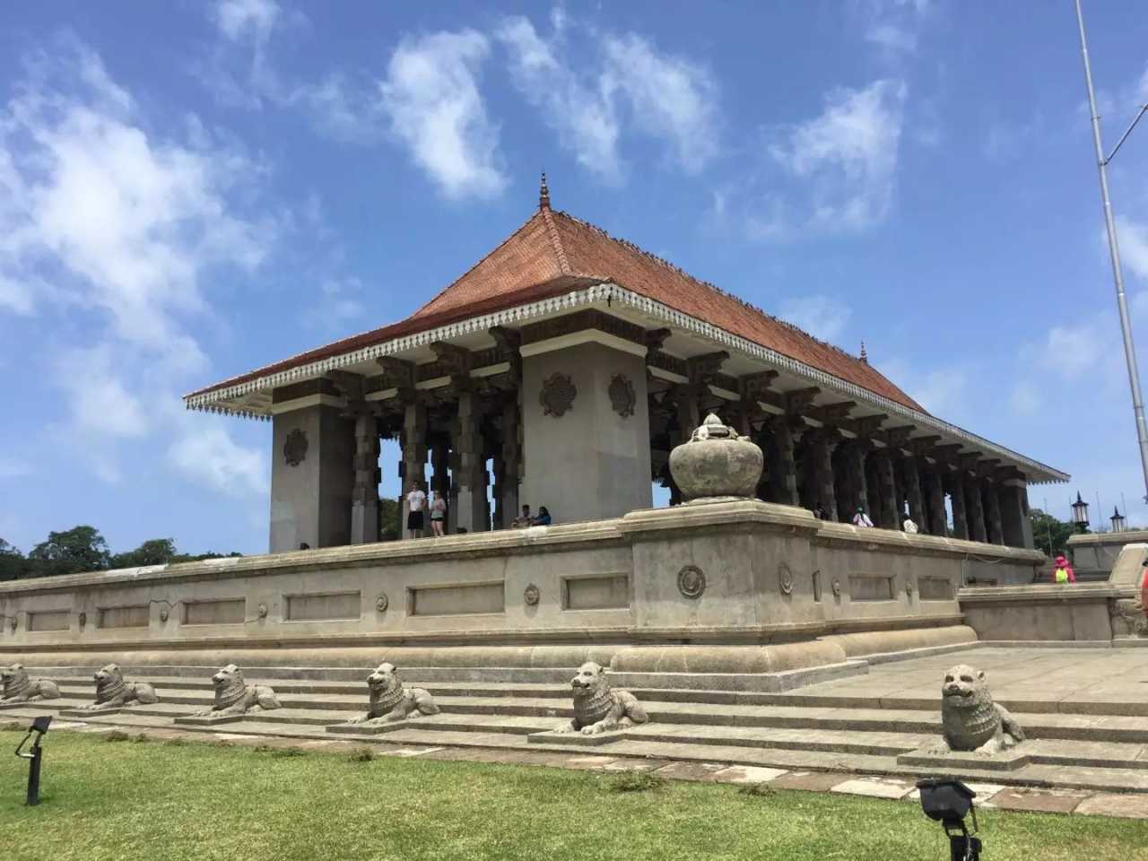 We then drove into Colombo to see the city. As Sri Lanka’s largest city, it may feel noisy to Chinese visitors, but for travelers there are colonial‑era buildings, a clock tower, the national museum, and galleries worth a look. First stop: the Bandaranaike Memorial International Conference Hall (BMICH), sometimes called Colombo’s “White House,” built with Chinese aid; it’s not open to the public. Opposite is Viharamahadevi Park and the City Hall complex. In central Colombo, the BMICH is grand and iconic: a 16,000‑square‑foot hall, 400 telephone lines, and a new library. The octagonal plan features an outer colonnade of 48 white marble columns, deep eaves, and lattice walls—light and tropical in character. Built in the 1960s–70s as a gift from China (decision in 1964, completed May 1973), it has served Sri Lankan public life for over 30 years, akin to China’s Great Hall of the People and hailed as a symbol of China–Sri Lanka friendship. Nearby stands the Chinese Embassy—two buildings mirroring each other, symbolizing close ties. The skyline isn’t very tall, though new high‑rises are being constructed—our guide said many are Chinese‑funded. During President Xi and Peng’s visit last year, they also supported a grand theater reminiscent of Beijing’s Bird’s Nest.