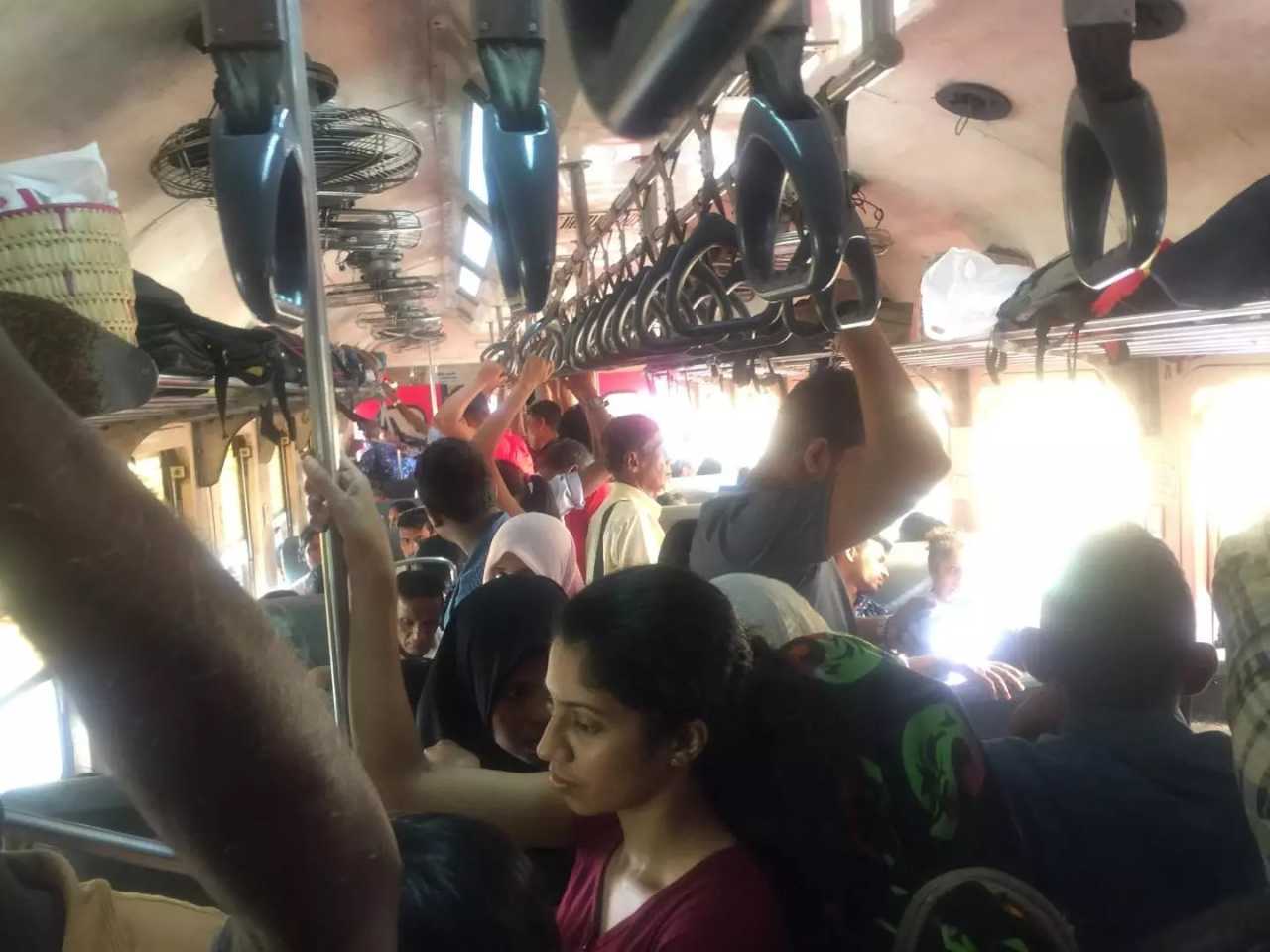 Friday, Sept 16: the day’s highlight—the famed coastal train. Many say a trip to Sri Lanka must include a ride on the seaside railway, said to have inspired the ocean train in Miyazaki’s Spirited Away. Tracks run just steps from the surf and the Indian Ocean scenery is gorgeous. The line dates to the British colonial era when it carried tea; today it’s still a commuter workhorse. After an hour by road we caught the train to Colombo for a one‑hour ride along the sea. Honestly, the photos online oversell it: the views are beautiful, but on Friday the train was packed—no chance of a window seat, even standing was hard. The cars are old and unair‑conditioned, and vendors weave through the aisles with goods; locals take it in stride. Still, leaning out of open windows with the ocean racing by is a rare experience. Colombo Fort station, in the city center, opened in 1908. It has 10 platforms and handles around 200,000 passengers daily. Compared with China’s big hubs it’s modest, but the network reaches many villages, is affordable, and serves people well.