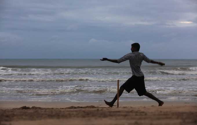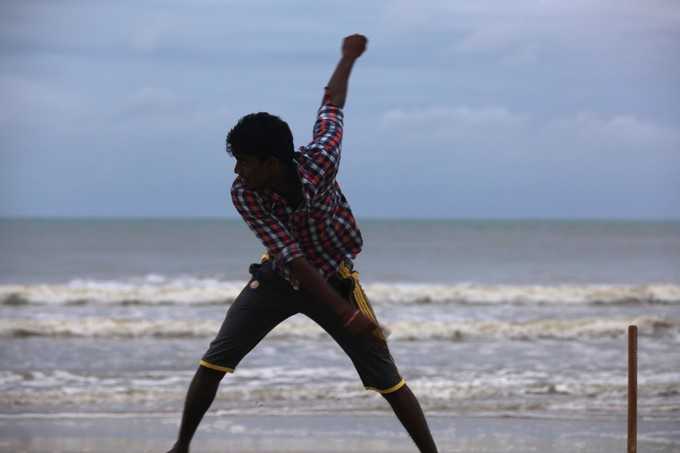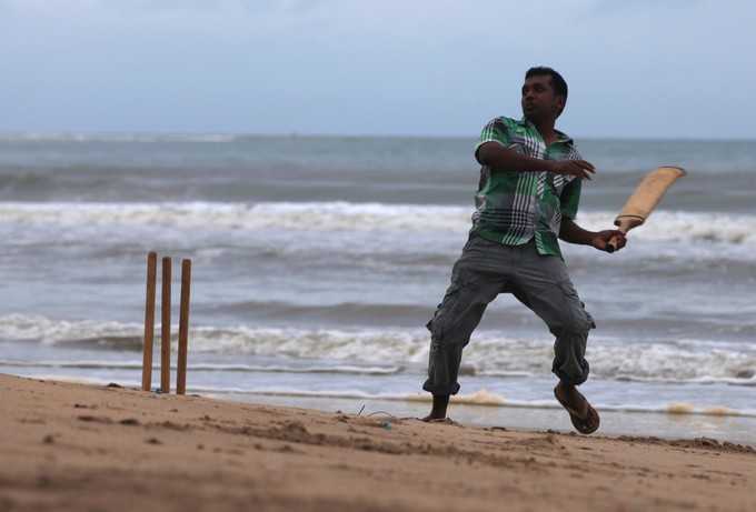When idle, the hotel lads play cricket on the sand—with real flair.