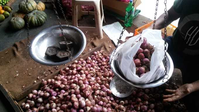 At the market we found primitive scales used by many vendors: a simple balance with 1‑kg and 0.5‑kg weights. Accuracy is… questionable.