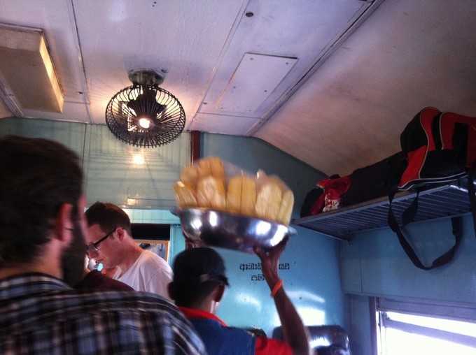 Trains are packed, no reserved seats; you mostly stand. Locals sit at the doorways. Even in that crush, vendors weave through with big tubs—wild.