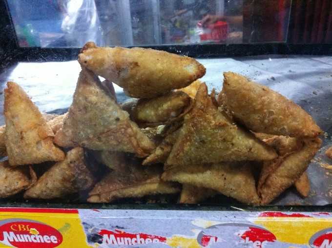 These are curry‑filled, deep‑fried snacks—mostly mashed potato, often with half an egg inside.