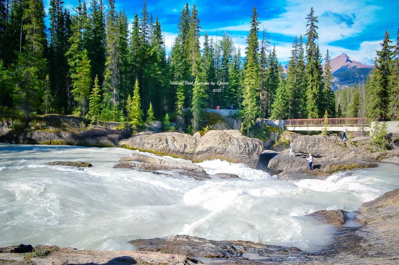 Natural Bridge is a "bridge" naturally formed by hard rock, spanning the turbulent Kicking Horse River. This was originally a waterfall. Over thousands of years, the river water continuously eroded the rock, gradually hollowing out the softer parts, eventually forming today's "bridge" - a naturally formed stone arch, with water flowing underneath, like a work carefully carved by nature with a sculpting knife.