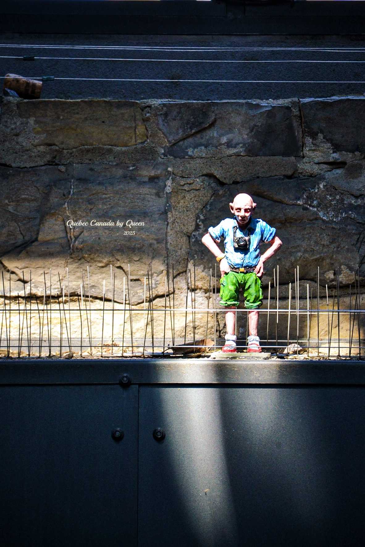 One of the most interesting urban details in Quebec's old town is those small bronze statues, usually called "the man on the eaves" (L'homme au regard perçant), or simply nicknamed "Quebec roof killer brother" by tourists.