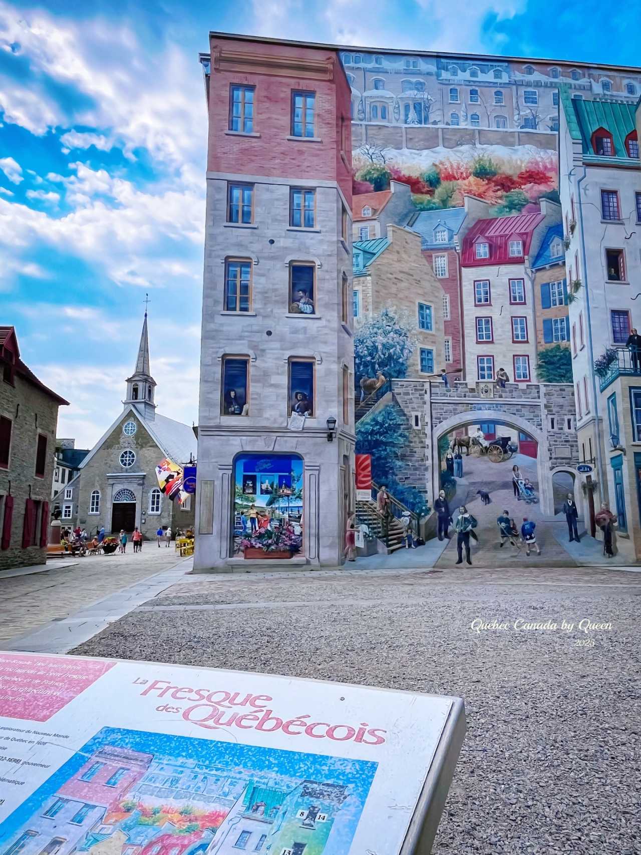 Walking to the end of the street, don't miss that extremely famous Fresque des Québécois ("Quebec Mural"). This giant mural is three stories high, depicting not only the development history of this city but also cleverly "hiding" many local historical figures, artists, and citizens, with reality and illusion interwoven.