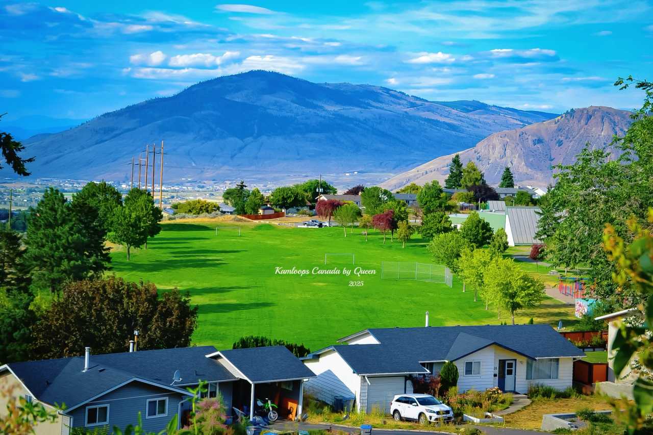 Kamloops is the "Sunshine City" of British Columbia. I didn't go into the city to check in, just rested in the hillside villa area outside the city. In the evening, sunlight falls from the west, the entire community is quiet and tidy, with gardens and neat lawns in front of the houses exuding a leisurely life atmosphere. Standing at the top of the slope looking out, the whole Kamloops unfolds: the winding river like a silver belt flows through the city, and the valley glows with a soft golden pink in the sunset.