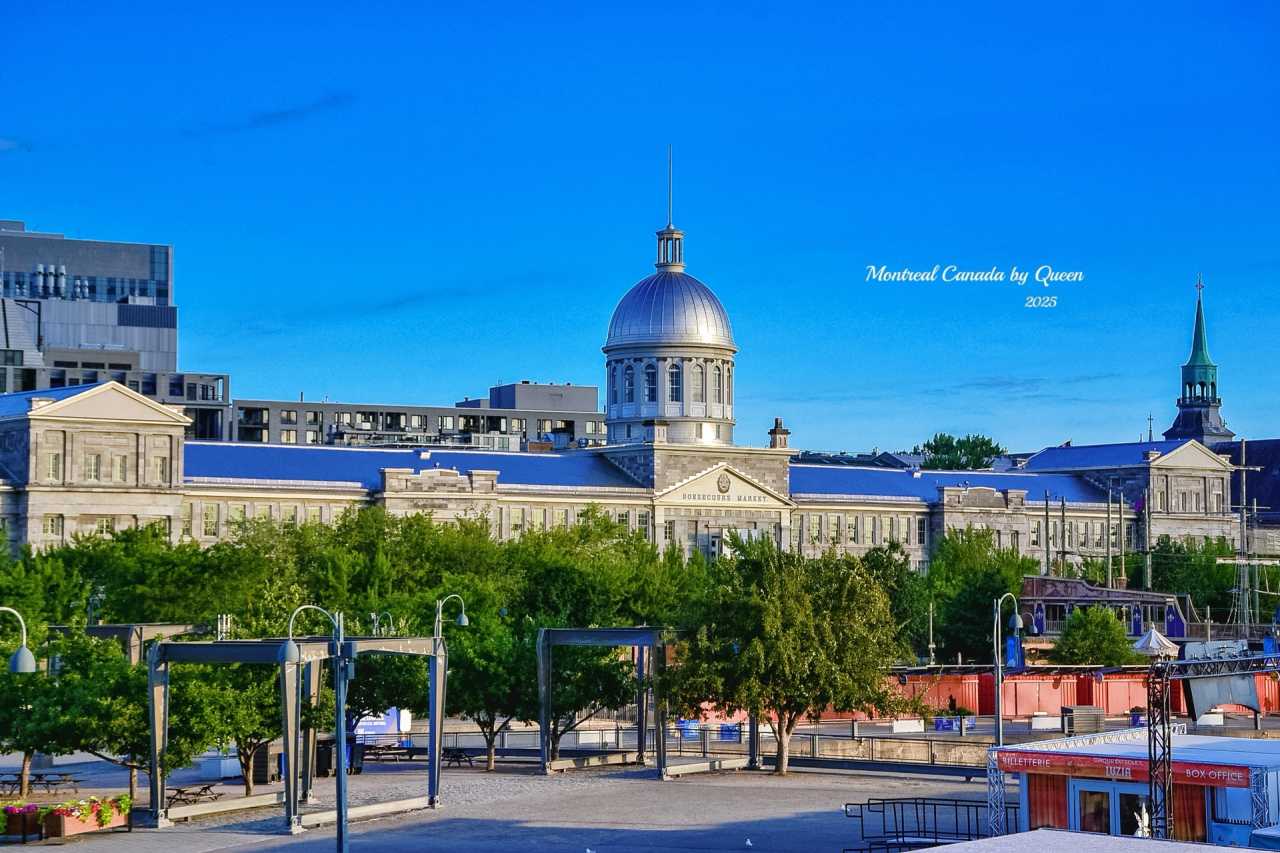 One of the most eye-catching buildings in the Old Port is the Bonsecours Market, whose silver-white dome shimmers with a faint light under the morning sun, like an old-era gem that has been polished. The long facade is composed of light gray stone walls, with windows reflecting golden skylight and casting quiet reflections on the water surface.