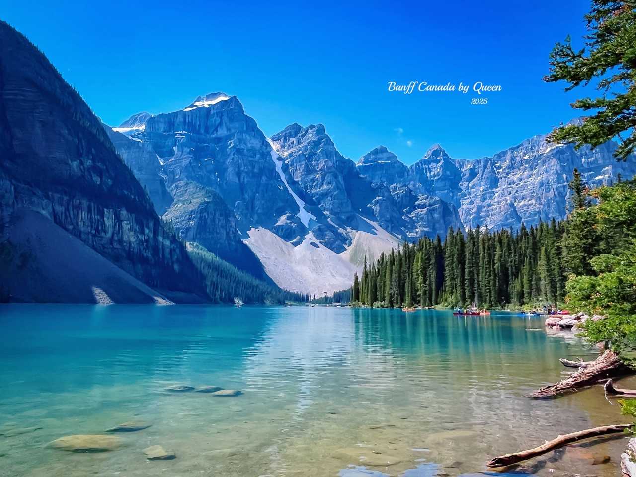 The first stop is Moraine Lake, like a dreamland. Surrounded by the Ten Peaks, the lake water is "milky blue" from glacier melt, paired with reflections and rocks - photos need no editing. At first sight of Moraine Lake, there are only two words in my heart: breathtaking.