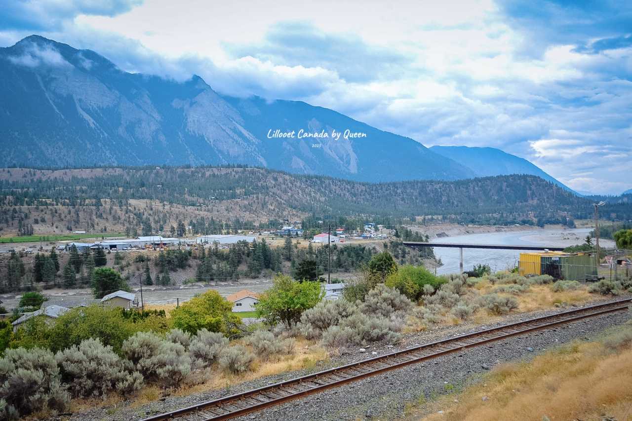 Further south, the climate suddenly becomes warm and dry, with vineyards and fruit trees even visible on the slopes - an unexpected semi-arid landscape. When passing through the town of Lillooet, surrounded by mountains, the air carries a dry coolness. The streets are surprisingly quiet, almost no pedestrians, occasionally a car slowly drives by. Lillooet is a small town located on the banks of Fraser River in BC province, surrounded by mountains and steep canyons, with magnificent scenery all around. It was once an important stronghold of the gold rush and also a place where indigenous and railway history intertwine.