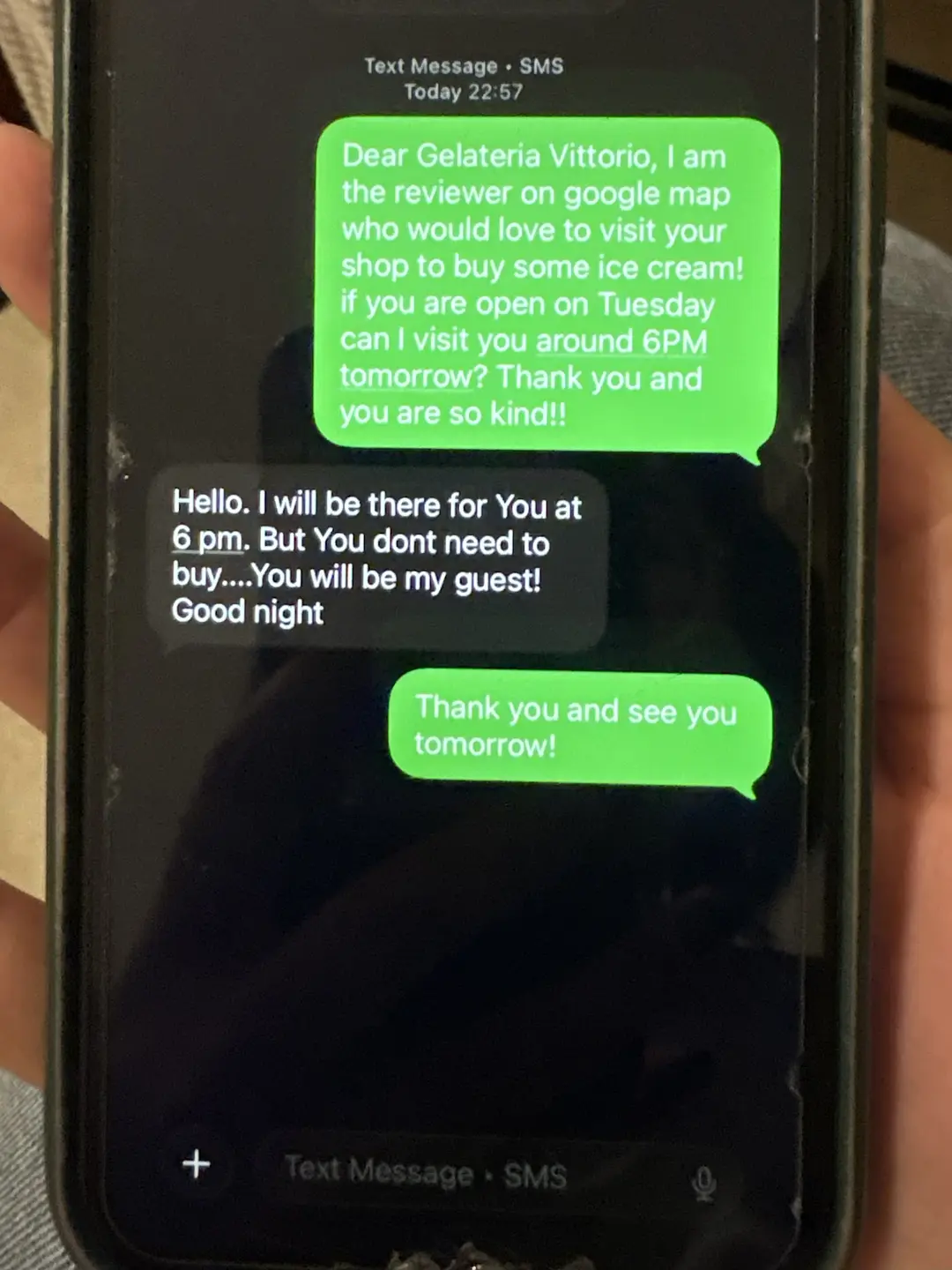 It's clearly the tone of an Italian grandpa, hahaha! I wanted to reply but found that the comment section couldn't support a conversation. So I quickly sent a text message to him, saying thanks for his reply and asking if he could open the store when I come to buy at 6 p.m. on Tuesday.